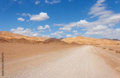 © slavapolo, Naklejka premium Road in the desert towards the distant rocks