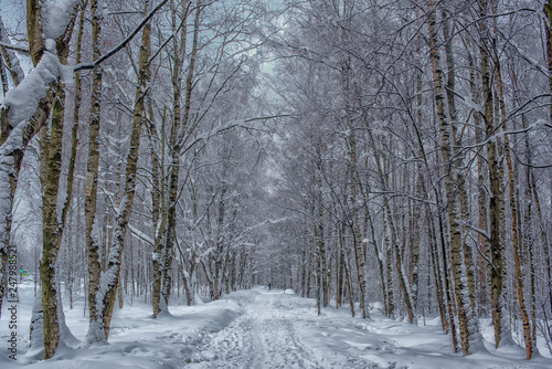 Naklejka premium road in the forest and a lot of snow