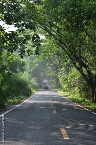 Fototapeta premium road in the forest and foggy after raining day in thailand