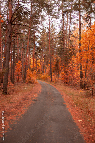 © schankz, Obraz premium Road in the forest in autumn as a background