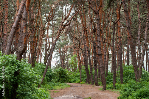 © vitleo, Obraz premium Road in the forest in the evening after the rain