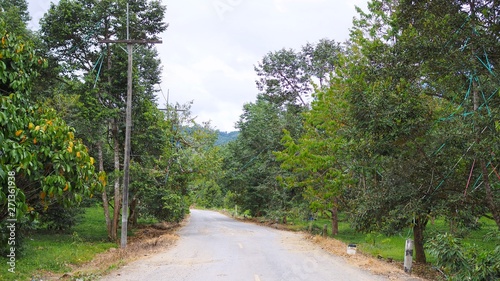 Fototapeta premium Road in the forest with sky, travel on natural concept, Space for text in template, Covered with trees