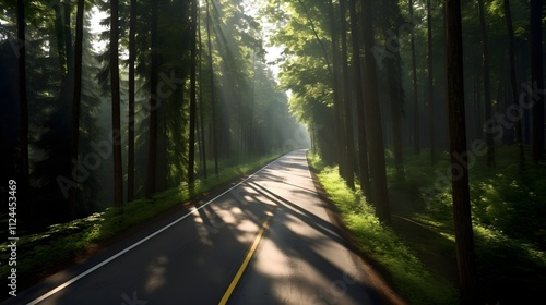 © Natthaporn, Obraz premium Road in the green forest