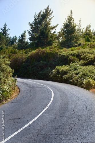 Fototapeta premium road in the middle of the forest, asphalt white lane curve, Madeira Island,...