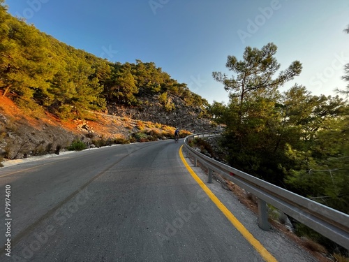 © Lev, Fototapeta premium road in the mountains with cycler