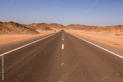 Fototapeta premium Road in the sahara desert of Egypt. Conceptual for freedom, enjoying the...