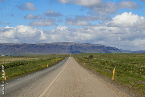 © Bookaroo68, Fototapeta premium Road in the south of Iceland, on a summer day with blue sky