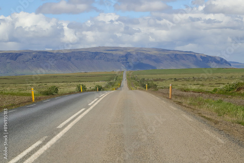 © Bookaroo68, Fototapeta premium Road in the south of Iceland, on a summer day with blue sky