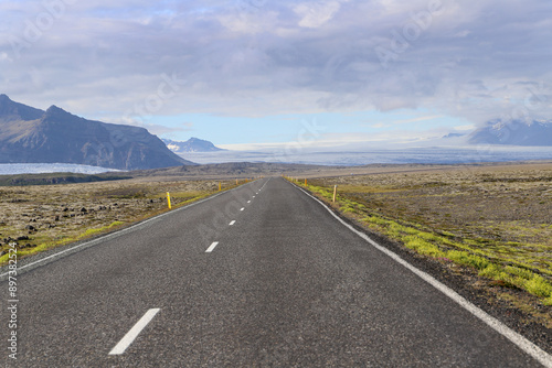 © Bookaroo68, Fototapeta premium Road in the south of Iceland, on a summer day with blue sky