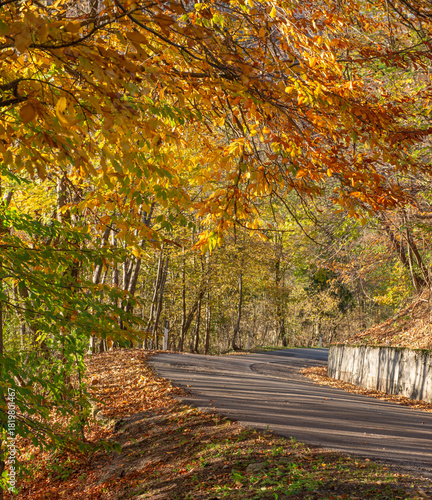 © pierluigipalazzi, Naklejka premium Road in the woods with autumn colors