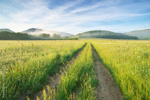 Obraz premium Road lane in spring mountain.