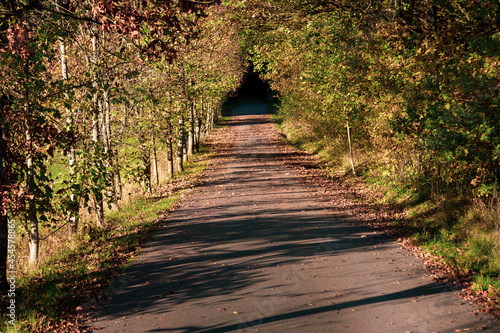 © Yann Wirthor, Obraz premium road leading into forest in the countryside in autumn