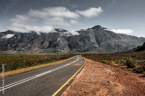 © charlfolscher, Naklejka premium Road leading to majestic mountain range