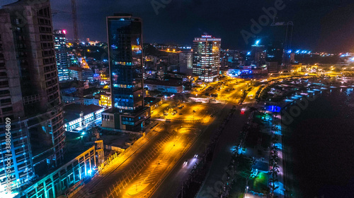 © Aldair, Obraz premium Road, lights and sea at night. Luanda city captured from the top