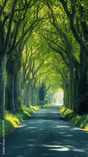© Alicina, Obraz premium Road lined with tall trees that form a tunnel with their branches