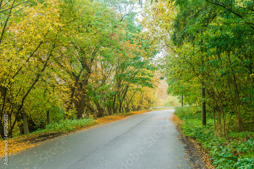 © Novanture, Obraz premium Road passing through colorful fall woodland