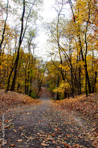 © altana_studio, Obraz premium Road path way in autumn park. Central park of New York with pathway. October