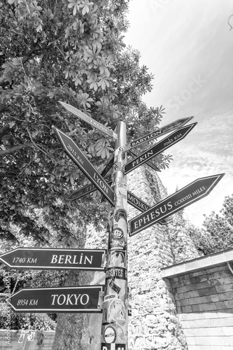 Fototapeta premium Road pole with City indications