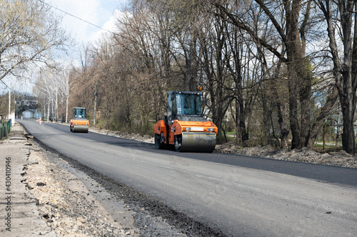 © ksena32, Obraz premium road repair with new asphalt and road rollers