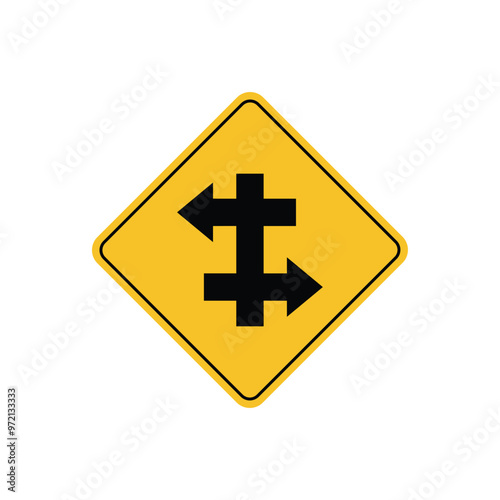 © Artoniumw, Fototapeta premium road sign icon, Divided road on yellow rhombus. board.suitable for poster use and web icon