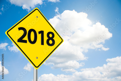Obraz premium Road sign 2018 on sky