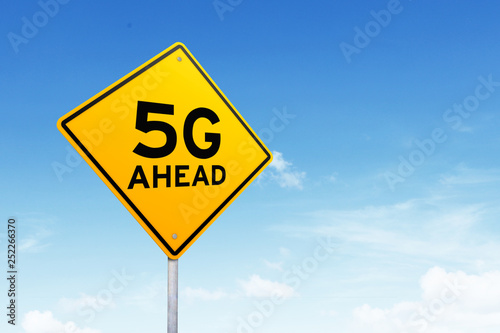 © Creativa Images, Naklejka premium Road sign with 5G network symbol