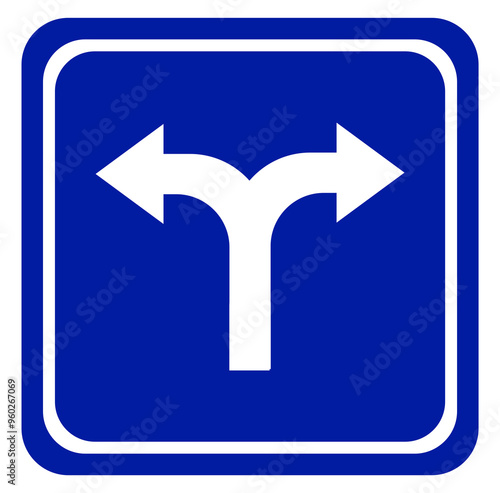 © Vaa, Obraz premium road signs for fork roads. white arrow on a blue square background. transparent background.