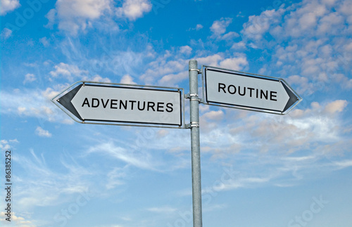 Fototapeta premium Road Signs to adventure and routine