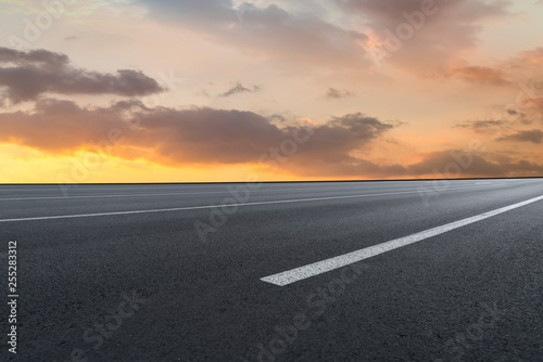 © zhouyilu, Naklejka premium Road surface and sky cloud landscape..