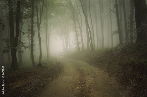 © andreiuc88, Fototapeta premium road through a forest with fog in summer