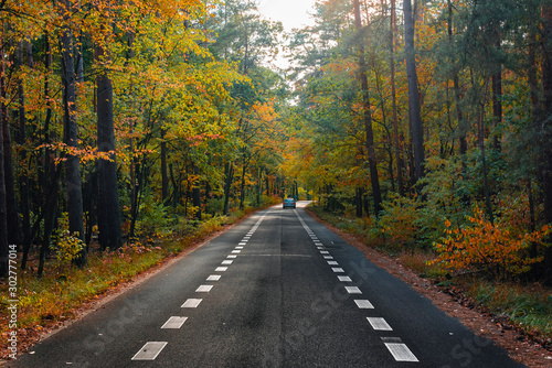 Obraz premium Road through an autumn forest, An autumn forest with a road, nice forest...