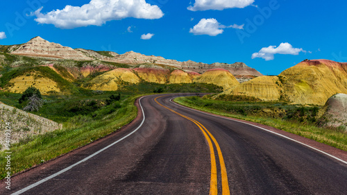 © David Sichi, Naklejka premium Road through Badlands National Park in South Dakota