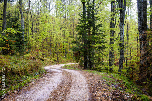 © Mihailo, Fototapeta premium Road through green forest