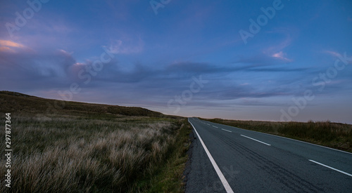 © tobibambola, Fototapeta premium Road through green landscapes in the sunset