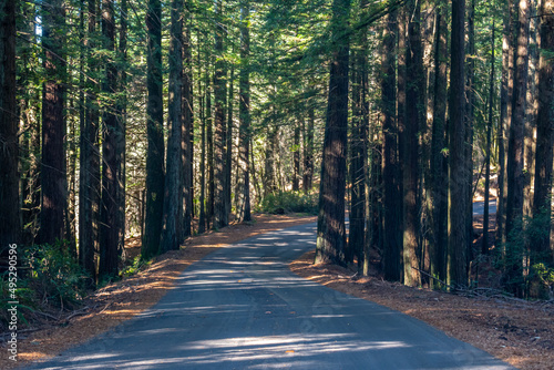 © Larry D Crain, Fototapeta premium Road through large pine trees