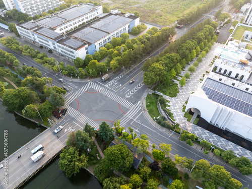 © zhu difeng, Fototapeta premium road through modern city with tree around
