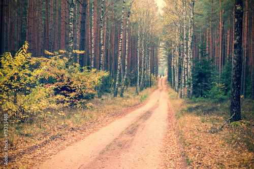 Obraz premium Road through the autumn forest