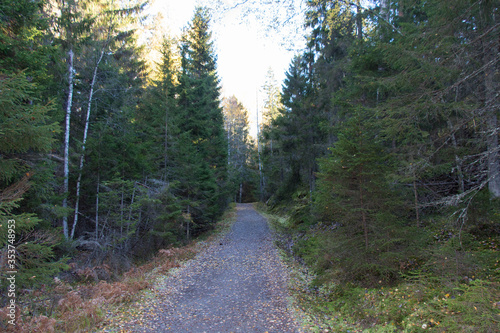 © daisy_y, Fototapeta premium Road through the forest at Tyresta National Park, Sweden.