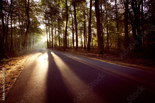 Fototapeta premium Road through the trees. Mornign landscape