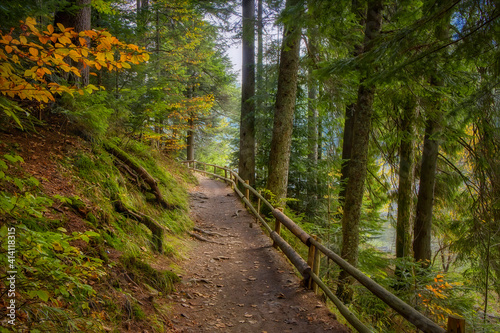 © e_polischuk, Obraz premium Road through the woods, beautiful autumn landscape