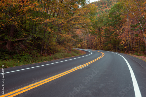 © lonewolf565, Fototapeta premium road through woods in autumn with colorful leaves