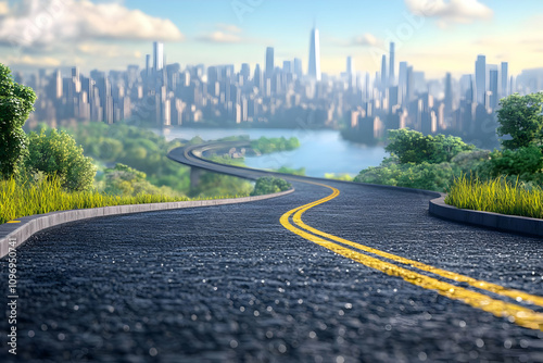 Fototapeta premium Road to Cityscape 3D Illustration