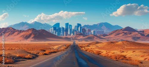 Naklejka premium Road to the desert city. Generative AI technology.