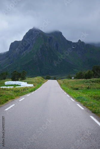 © Nicolas, Fototapeta premium Road to the mountains in the lofoten, norway