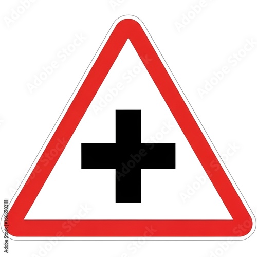 © A S H I K , Fototapeta premium Road traffic warning sign indicating a crossroads or intersection ahead isolated on white background