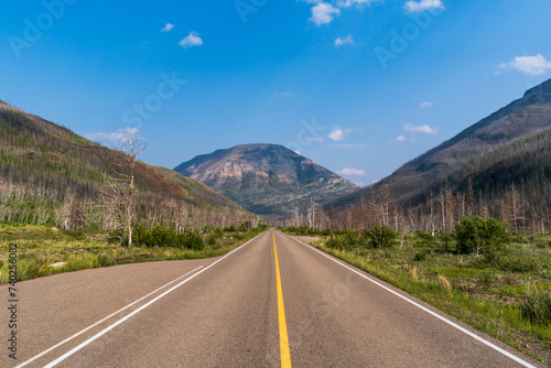 © TSchofield, Fototapeta premium Road traverses through valley in Waterton Lakes National Park, Alberta, Canada