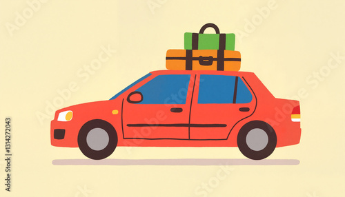 Fototapeta premium Road trip adventure with vibrant car and colorful luggage
