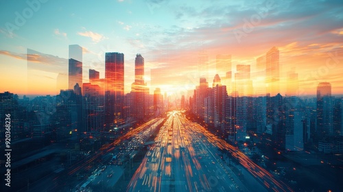 © Adisak, Fototapeta premium road trips filled with driving and sightseeing close up, focus on, copy space vivid hues Double exposure silhouette with iconic views