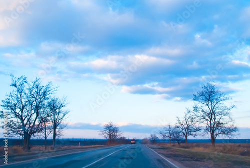 © Dmitro, Fototapeta premium Road under the evening blue sky