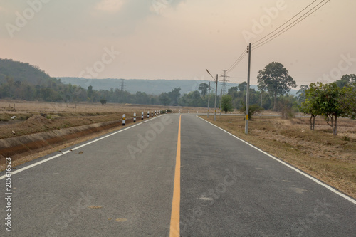 © bumbumbo, Fototapeta premium road up hill to the mountain top at at sunny sunset.